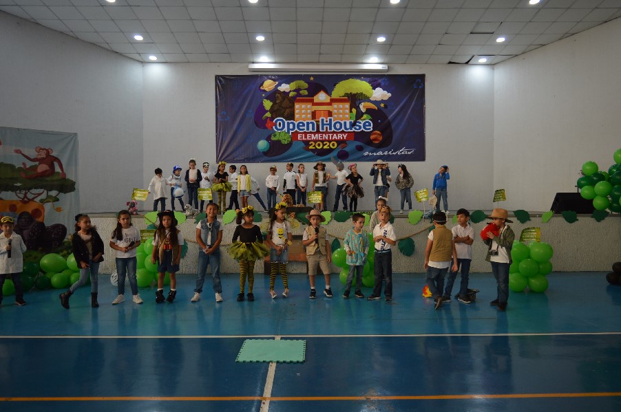 Los niños de primaria menor mostrando a sus padres sus conocimientos del idioma inglés por medio de varias dinámicas.